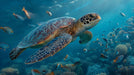 Sea Turtle in Coral Reef Mural Wallpaper | Hyper-Realistic Detail, Turquoise Water, Sunlit Ocean