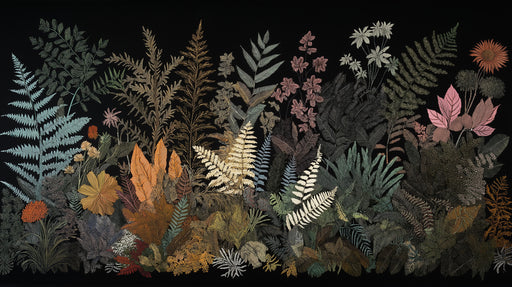 VivawallsThis wallpaper vividly depicts a lush jungle scene. It's filled with an abundance of ferns, leaves in various shades of green, and delicate flowers...