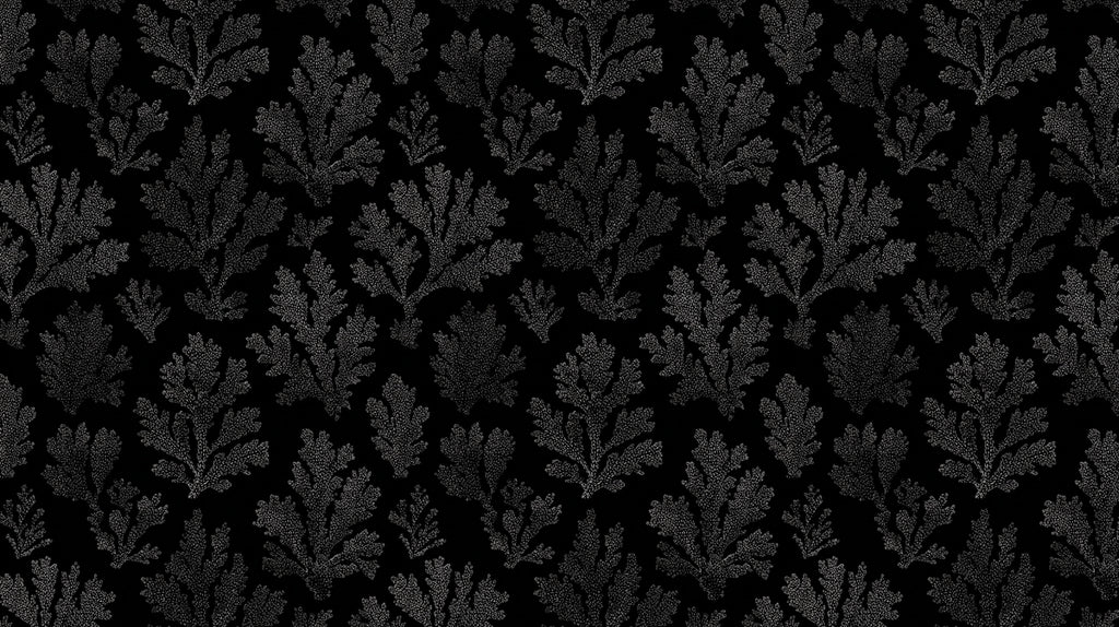 Moody Coral Damask Wallpaper | Black-on-Black, Stippled Texture, Gothic Glamour