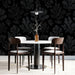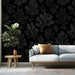 The Moody Coral Damask Wallpaper is a dramatic and deeply textured design. The pattern features large, stylized coral or foliage shapes created with dark gray stippling and dot work, subtly overlaid on a solid black background. The tone-on-tone darkness gives the pattern a luxurious, velvet damask or gothic glamour feel, revealing its detail only in certain light. This mural is perfect for a bold feature wall, a luxurious dressing room, or an intimate dining area.
