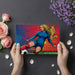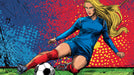 Female Footballer Pop Art Mural Wallpaper | Strong Figure, Red and Blue Contrast, Aggressive Grunge Style