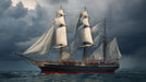 Stormy Seas Tall Ship Mural Wallpaper | Realistic Vessel, Dark Clouds, High-Contrast Marine Drama