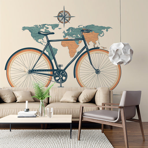 The Aged Copper and Slate World Map Mural Wallpaper is a richly textured, elemental artwork. The continents are presented in high relief, sculpted from rough, oxidized copper or bronze, featuring an aged, rustic patina with hints of verdigris or teal oxidation. This metallic landmass is set against a dark, slate-textured background with visible cracks. The warm copper tones contrast beautifully with the cool slate and patina, suggesting ancient, enduring civilization and geological history. This mural is perfect for a study, a luxury lounge, or a commercial space with industrial or rustic-chic decor.