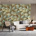 Sculptural Leaf Mural Wallpaper | Luxurious Blue and Beige
