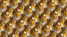 The Gold Splatter Soccer Pattern Mural Wallpaper is a bright and chaotic repeating print. It features white soccer balls with orange accents layered over a background of aggressive, glossy orange, gold, and white abstract splatters. The high contrast between the clean balls and the chaotic, metallic backdrop creates a sense of high energy and celebration. The overall aesthetic is vibrant, modern, and slightly aggressive. This mural is ideal for a lively study, a modern living room, or a space where high contrast and energy are desired.