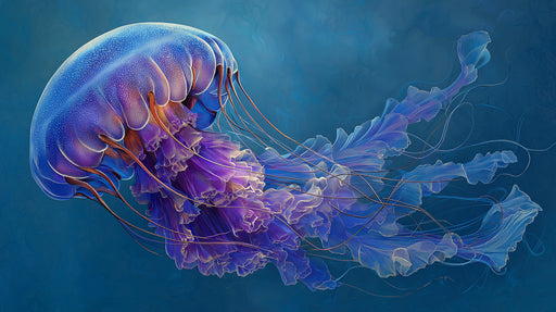 View full detailsIntense Blue Jellyfish with Textured Bell Mural | High Detail, Solid Color, Abstract Background