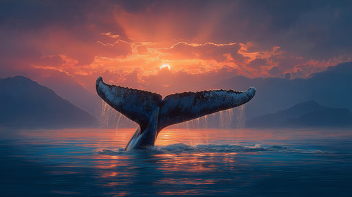 View full detailsSunset Whale Fluke Dive Mural Wallpaper | Fiery Red Sky, Dark Silhouette, Cinematic Ocean Drama