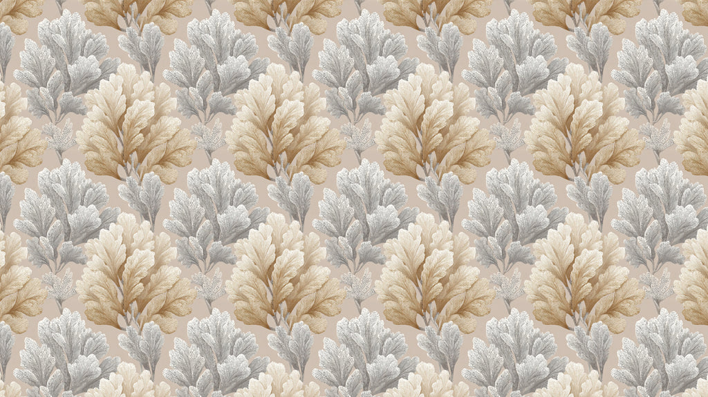 The Modern Botanical Mural Wallpaper is a charming and elegant piece of art. The design features a large-scale, repeating pattern of stylized leaves in a sophisticated palette of warm tan and cool gray. The painterly texture and harmonious color blend create a sense of tranquil elegance and modern charm. This mural is an ideal choice for a serene study, a peaceful living room, or a minimalist home office that seeks a touch of classic, timeless beauty.
