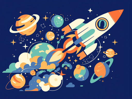View full detailsSpace Rocket and Planets Pattern Mural Wallpaper | Blue Orange Yellow and Red Rocket and Planet