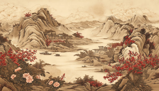 View full detailsVintage Chinese Landscape Mural Wallpaper | Elegant River Scene with Villages