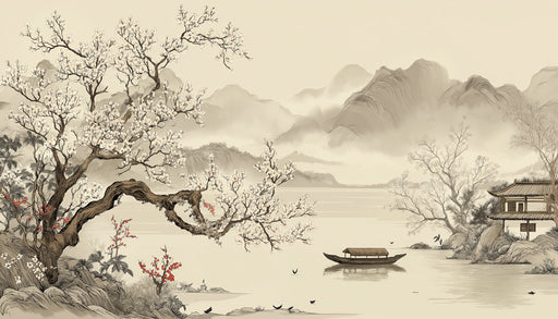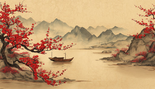 View full detailsTraditional Chinese Art Mural Wallpaper | Red Plum Blossoms & River Scene