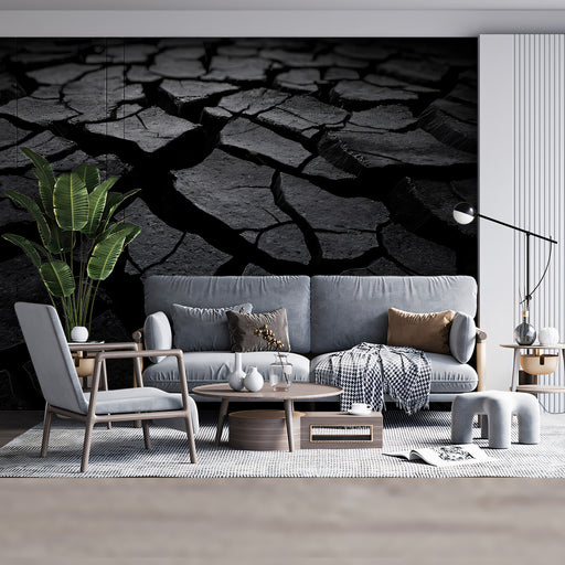 Vollständige Details anzeigenCracked Earth Texture Dark Monochrome Mural Wallpaper | Dramatic Abstract Art