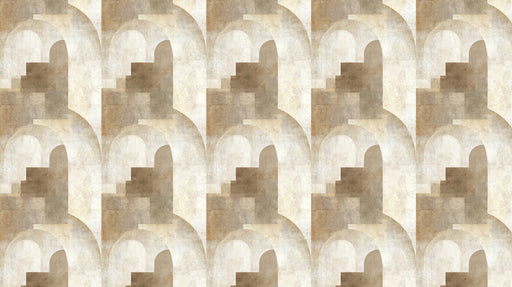 Vollständige Details anzeigenAbstrakter Bogen & Treppenhaus Art-Deco-geometrisch Wiederholendes Druckmuster Tapete | Sanfte Neutraltöne, architektonische Tiefe