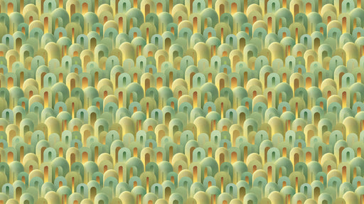 Vollständige Details anzeigenAbstrakte erdige Bogenhaufen in sanften Grüntönen und Goldtönen abgerundete 3D Textur Wiederholungsdruck Wandmalerei Tapete