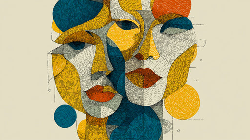 Vivawalls StoreDie Geometrisch Kubistisch Abstrakt Das Wandgemälde Gesichter ist ein kühnes und raffiniertes Kunstwerk. Es zeigt mehrere überlappende Gesichter, d...
