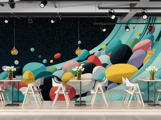 Vollständige Details anzeigenAbstrakte fließende Kiesel-Murals Tapete | Texturierte kosmische Welle
