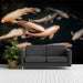 Make a powerful artistic statement with this dramatic koi pond wall mural. A school of elegant white koi fish glides through deep, dark waters, their shimmering scales creating a luminous contrast. The fluid movement and Zen-inspired theme bring a sense of high-end tranquility and prosperity to any interior, making it a stunning centerpiece for entryways, commercial space, or minimalist offices.