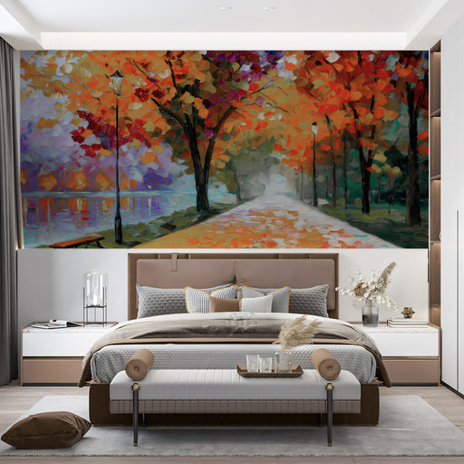 Vollständige Details anzeigenMidnight Autumn Park Mural - Romantic Vibrant Impressionist Art