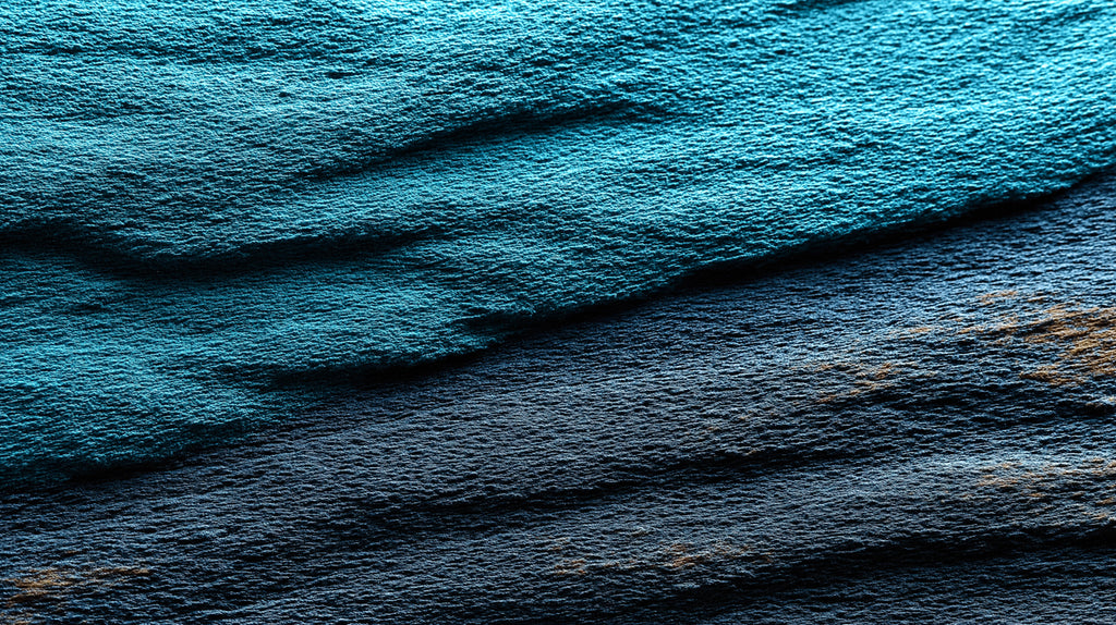 The Stormy Sea Mural Wallpaper captures a dramatic, moody abstract landscape. It features a bold, two-tone design with a vibrant, luminous turquoise at the top and a deep, shadowy indigo at the bottom. The surface is rich with a course, tactile texture that mimics a windswept ocean and a dark, brooding sky. This striking contrast of color and texture makes it a perfect choice for a coastal-themed reception, a dramatic reading nook, or any space that requires a touch of natural, powerful elegance.