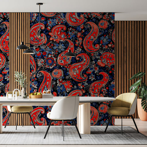 Feuriges Paisley - Wandteppich - Mural - Tapeten | Lebendiger, eklektischer Ausbruch
