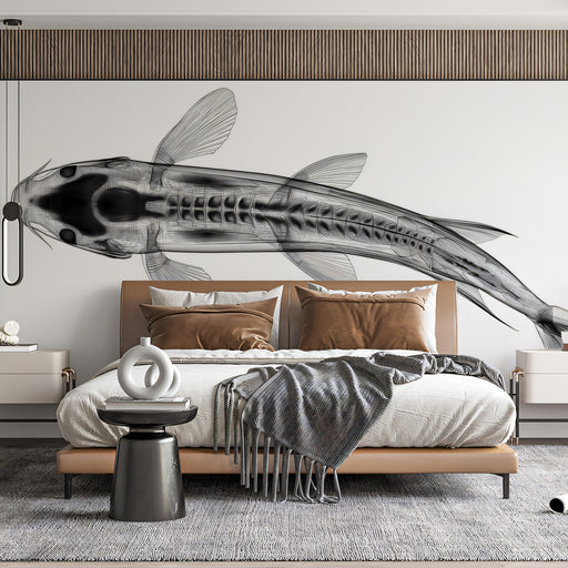 Scientific X-Ray Koi Anatomy Wall Mural | Modern Industrial Minimalism & Unique Biological Art
