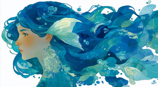 Vivawalls StoreDie ätherische blaue Meerjungfrau Fantasy Illustrations-Mural-Tapete mit einer atemberaubenden, filigranen Illustration einer Meerjungfrau, die dur...