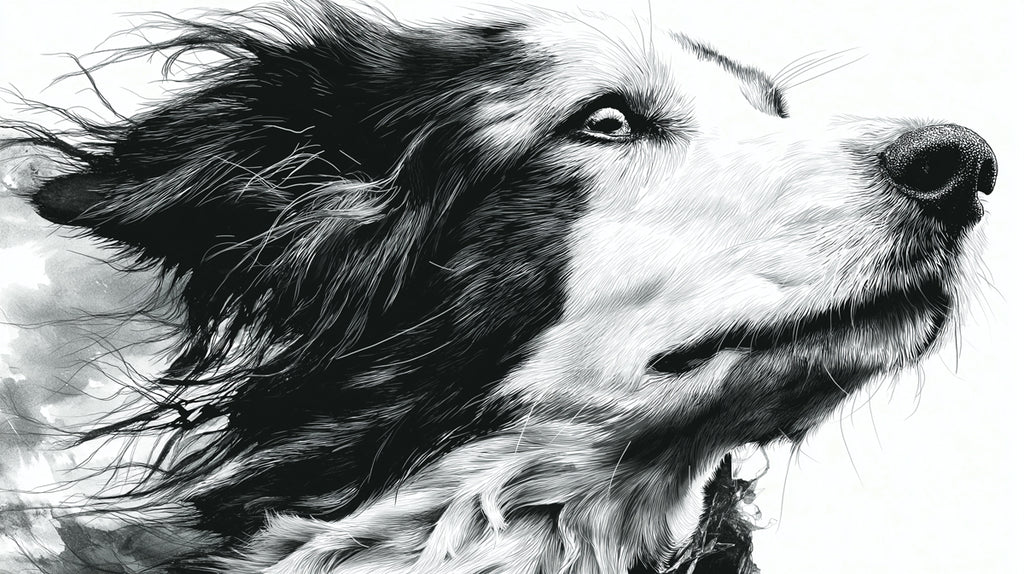 Erfassen Sie den Geist der hündischen Loyalität und Dynamik mit diesem faszinierenden Hintergrundbild, das ein intensiv geätztes Monochrom-Porträt eines majestätischen Hundes zeigt, dessen Fell scheinbar vom Wind gezaust wird. Die feinen Linien und kräftigen Schattierungen erfassen den kraftvollen Blick und die texturierte Bewegung seines Fells, wodurch ein fesselndes und ausdrucksstarkes Bild entsteht. In einem kontrastreichen Schwarz-Weiß-Farbschema gehalten, betont das Werk die exquisite Handwerkskunst sowie das dramatische Zusammenspiel von Licht und Schatten. Diese Illustration ist ideal, um eine energiegeladene, künstlerische und moderne Atmosphäre in Wohnzimmern, Arbeitszimmern oder jedem Raum zu schaffen, der feine Tierkunst und zeitgenössisches minimalistisches Design schätzt.