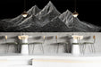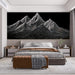 Minimalist Line Art Mountain Range Mural | Modern Monochrome Topographic Wallpaper