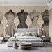 Celebrate the elegance of form with this sophisticated line art wall mural. Featuring five stylized mannequin silhouettes rendered in precise, rhythmic black lines against a soft taupe background, the design offers a unique fusion of fashion illustration and architectural geometry. The fluid curves and structured forms create a calm, high-end artistic statement ideal for fashion boutiques, modern walk-in bedroom, design studios, or minimalist hallways.