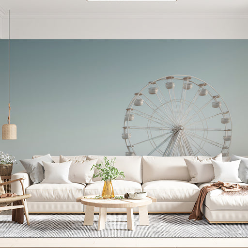 Vivawalls StoreThis sophisticated wall mural captures the silent beauty of architectural geometry. A pristine white Ferris wheel stands isolated against a flat, p...