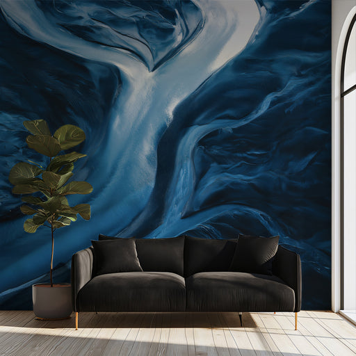 Vivawalls StoreCapture the raw beauty of nature with this abstract aerial view of a glacial river delta. The interplay of deep navy and icy blue tones creates a s...