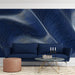Embrace the future with this sleek, technology-inspired abstract mural. Thousands of white dots create flowing, wave-like lines against a deep navy blue background, resembling a digital wireframe or a data stream. This design conveys motion, intelligence, and modern connectivity. It is the ultimate backdrop for a tech startup office, a gaming room, or a contemporary living space that appreciates clean, digital aesthetics.
