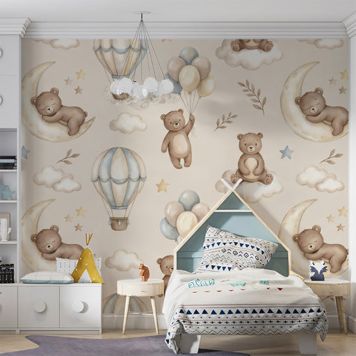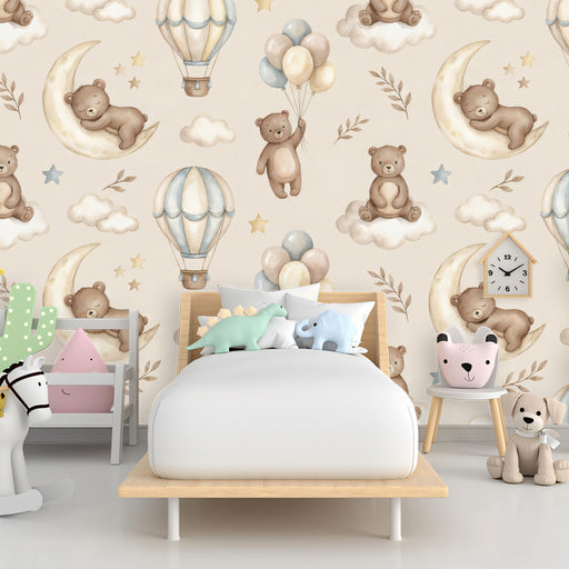 Wrap your little one's room in warmth with this adorable seamless pattern wallpaper. Featuring cute teddy bears sleeping on crescent moons, holding...