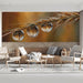 Witness the intricate beauty of an autumn morning. This stunning macro-style mural features crystal-clear dewdrops clinging to a golden ear of wheat, each reflecting a miniature world within. The soft, blurred background in warm amber and gold tones creates a peaceful and abundant atmosphere, perfect for a cozy bedroom, breakfast nook, or a nature-inspired living room.