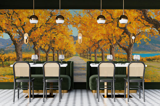 Vollständige Details anzeigenGolden Orchard Perspective Mural - Vibrant Impasto Autumn Art