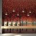 Ignite your space with a mesmerizing sunset glow. This contemporary mural uses an iconic dot-work and pattern style to depict a dense forest of red and gold trees against a shimmering waterfront. The vibrant red tones and precise rhythmic composition add a bold, high-energy artistic flair to any modern interior, perfect for a statement wall in a meeting room or a shop.