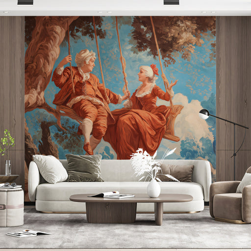 Vivawalls StoreInspired by the grand romanticism of 18th-century French Rococo art, this mural depicts a noble couple enjoying a playful moment on a swing amidst ...