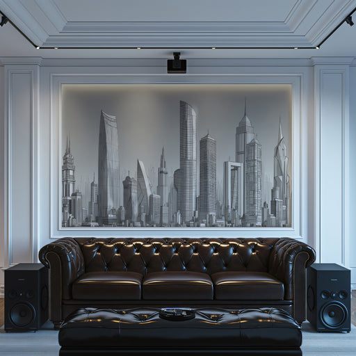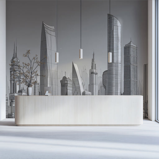 Vollständige Details anzeigenFuturistic Monochrome Skyline Mural - Modern Minimalist Cityscape Decor