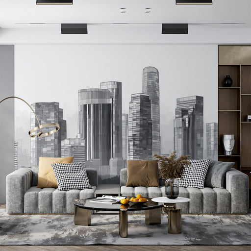 Vivawalls StoreExperience the calm pulse of the city. This minimalist mural captures a dense urban skyline in varying shades of grey, creating a sophisticated sil...