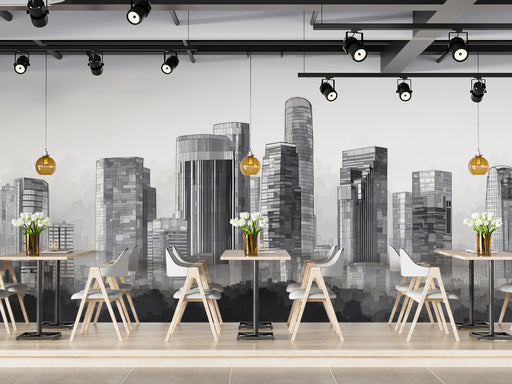 Vollständige Details anzeigenModern Metropolis Silhouette Mural - Minimalist Gray Cityscape Art