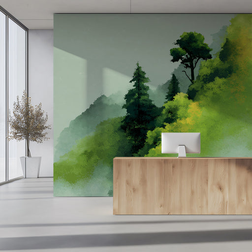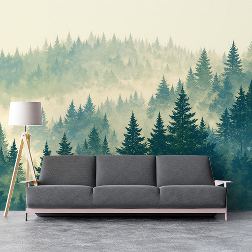 Vollständige Details anzeigenMisty Forest Wandbildtapete | Grün Blau und Beige Wald