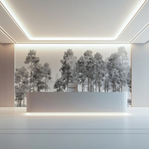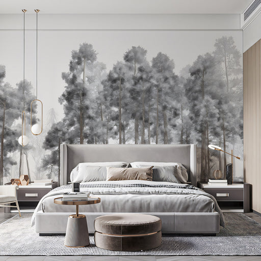 VIVAWALLSThis striking Monochrome Winter Forest Mural Wallpaper offers a unique and minimalist take on a winter landscape. The design features a forest of s...