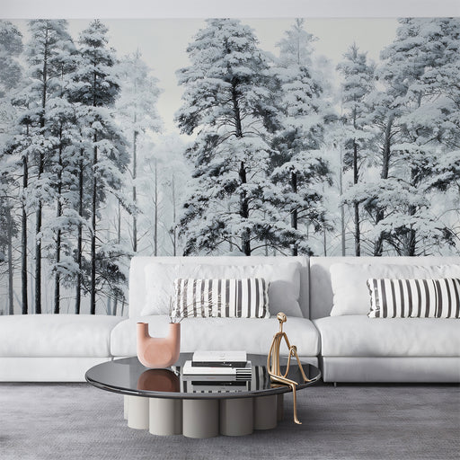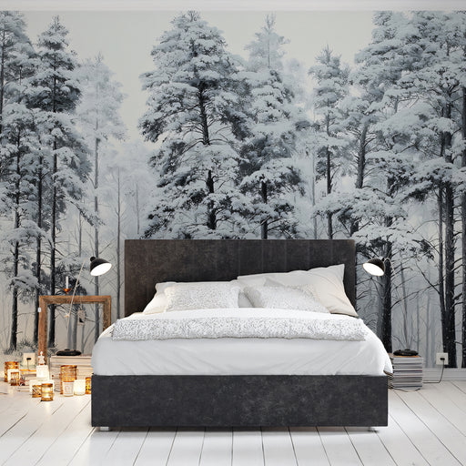 Vollständige Details anzeigenWinter Forest Mural Wallpaper | Serene Snowy Pine Trees