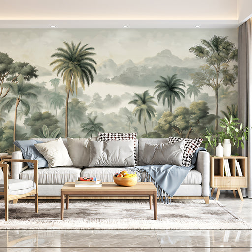 Vollständige Details anzeigenTropical Jungle Mural Wallpaper | Lush Greenery with Misty Mountains