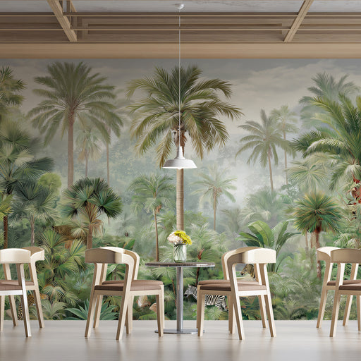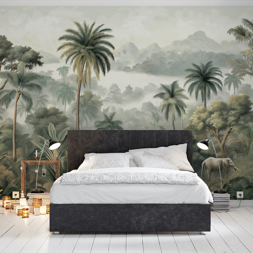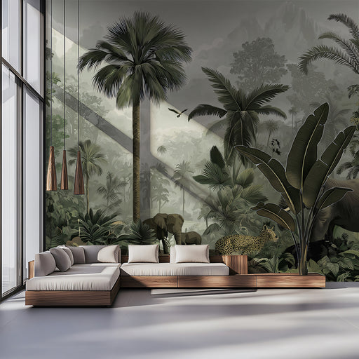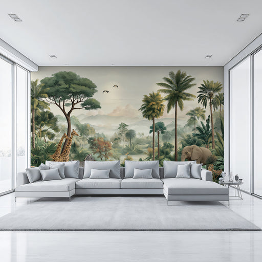 Vollständige Details anzeigenTropical Jungle Mural Wallpaper | Lush Wildlife & Misty Landscape