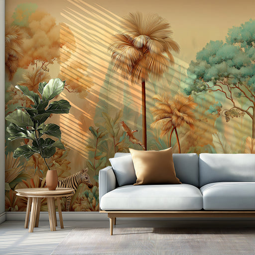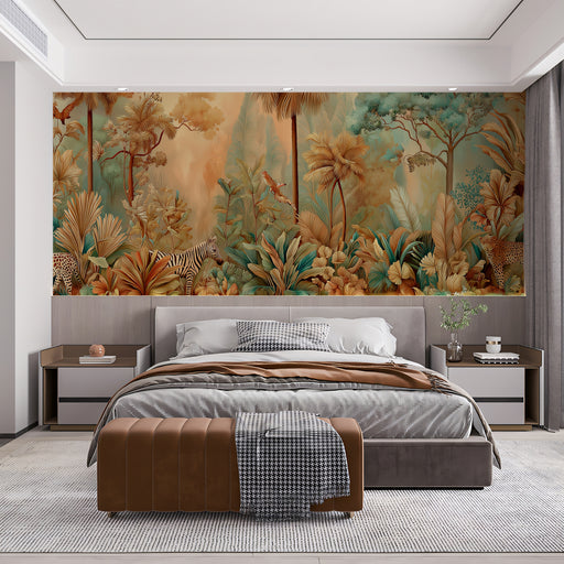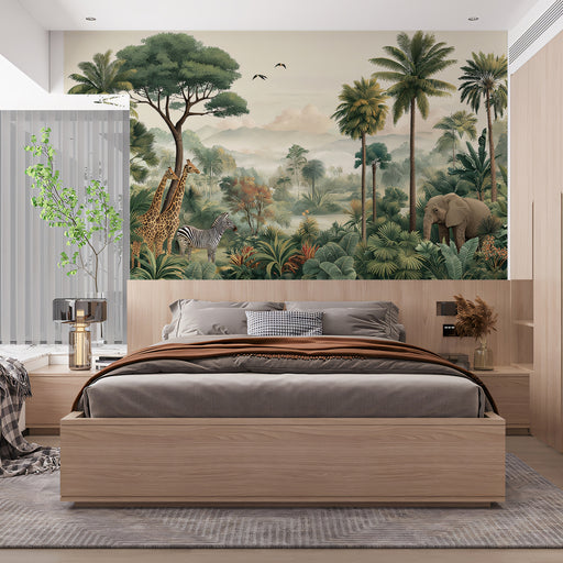 Vollständige Details anzeigenVintage Tropical Mural Wallpaper | Majestic Wildlife & Misty Landscape