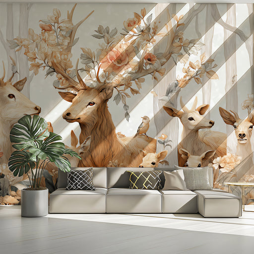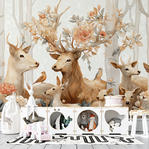 Vollständige Details anzeigenWhimsical Deer Mural Wallpaper | Romantic Forest with Flowers