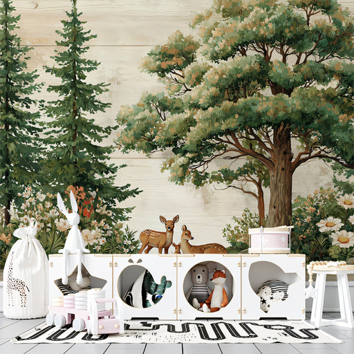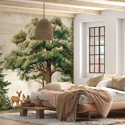 Vollständige Details anzeigenRustic Forest Mural Wallpaper | Peaceful Deer & Lush Greenery