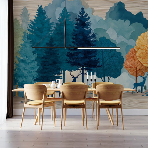 Vollständige Details anzeigenAbstract Deer Forest Mural Wallpaper | Colorful Trees & Wood Grain Texture