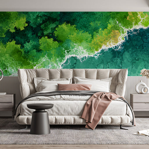 Vollständige Details anzeigenAbstract Ocean Mural Wallpaper | Vibrant Aerial Forest and Waves